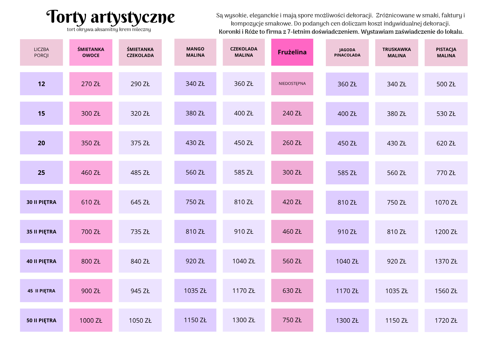 Witaj! Nazywam się Dorota Koronka - Różewska i od 2019 roku prowadzę przydomową pracownię cukierniczą. Tworzę jakościowe ciasta, artystyczne torty oraz mini słodkości z dobrych składników Smak i wygląd wypieku moim motto przewodnim.